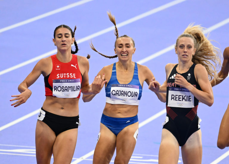 Slovenská atlétka Gabriela Gajanová (uprostred) po semifinálom behu žien na 800 m v rámci XXXIII. letných olympijských hier 2024 v Paríži. Paríž, 4. august 2024. Foto: SITA/Martin Medňanský