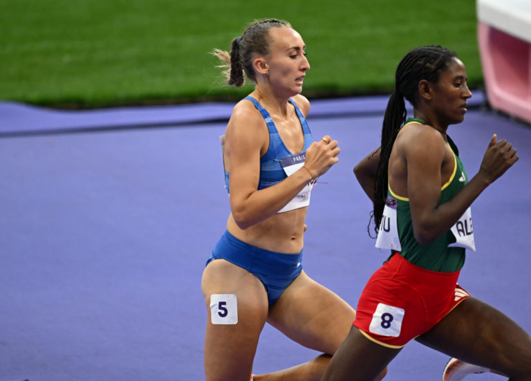 Slovenská atlétka Gabriela Gajanová (vpravo) počas rozbehu 800 m ženy v rámci XXXIII. letných olympijských hier 2024 v Paríži. Paríž, 2. august 2024. Foto: SITA/Martin Medňanský