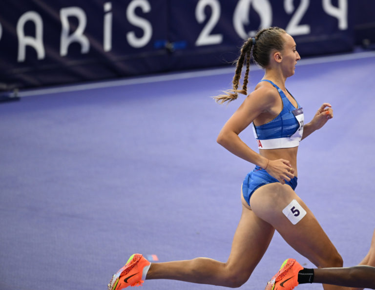 Slovenská atlétka Gabriela Gajanová počas rozbehu 800 m ženy v rámci XXXIII. letných olympijských hier 2024 v Paríži. Paríž, 2. august 2024. Foto: SITA/Martin Medňanský.