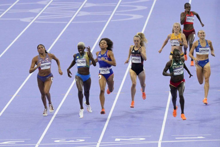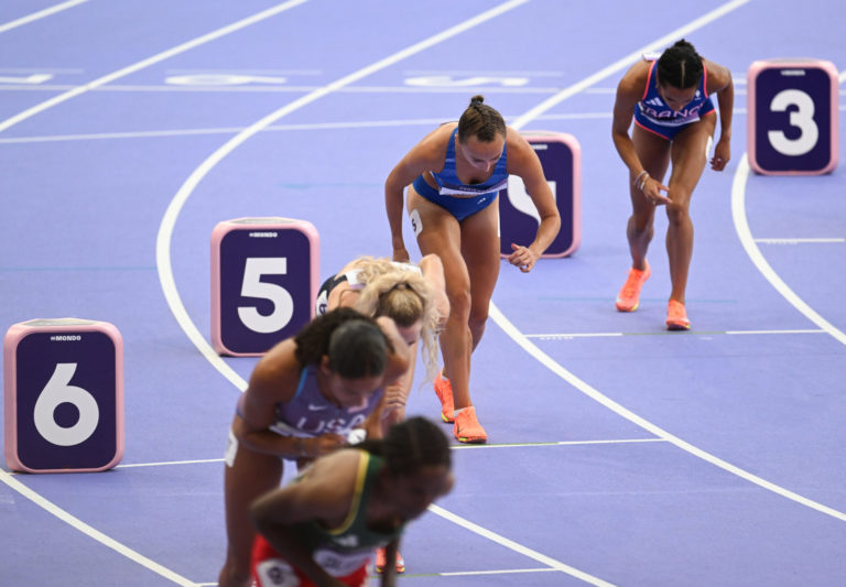 Slovenská atlétka Gabriela Gajanová (uprostred) počas rozbehu 800 m ženy v rámci XXXIII. letných olympijských hier 2024 v Paríži. Paríž, 2. august 2024. Foto: SITA/Martin Medňanský