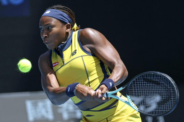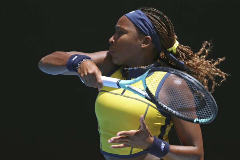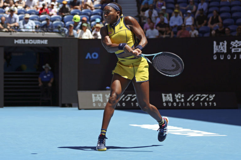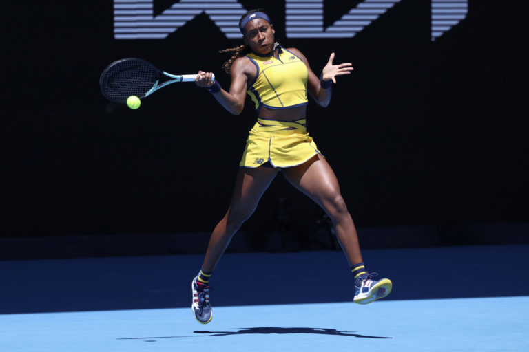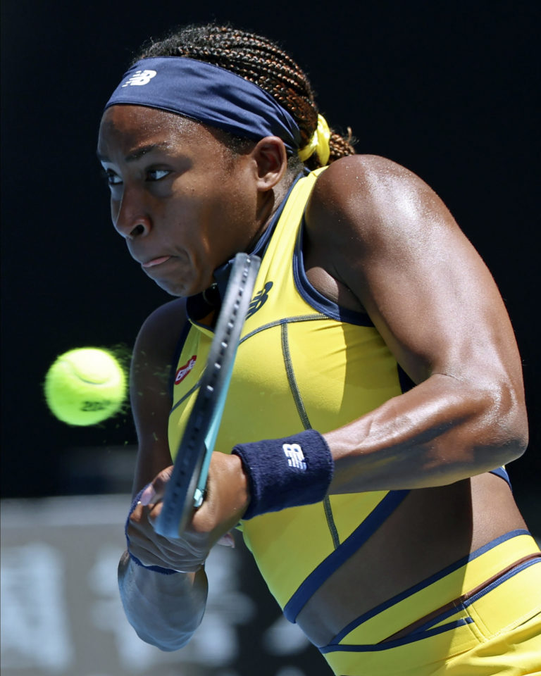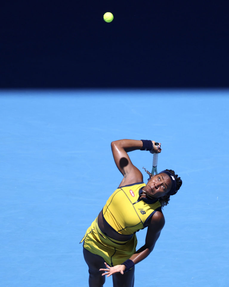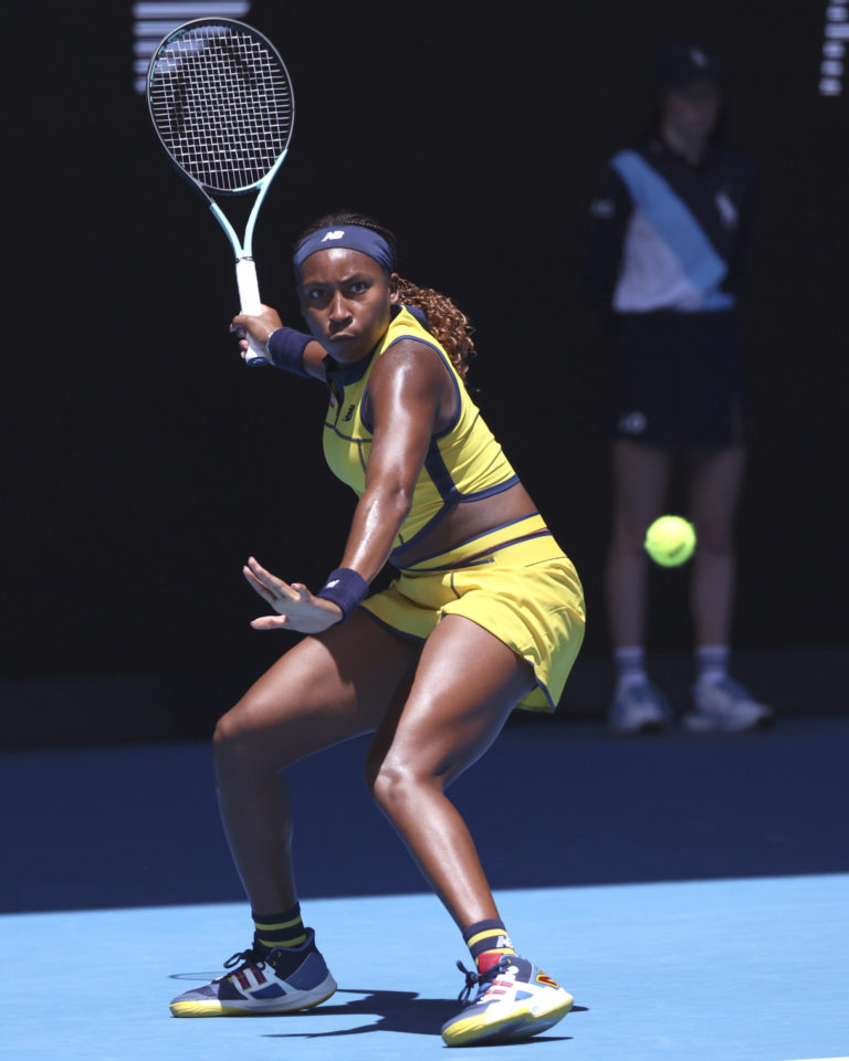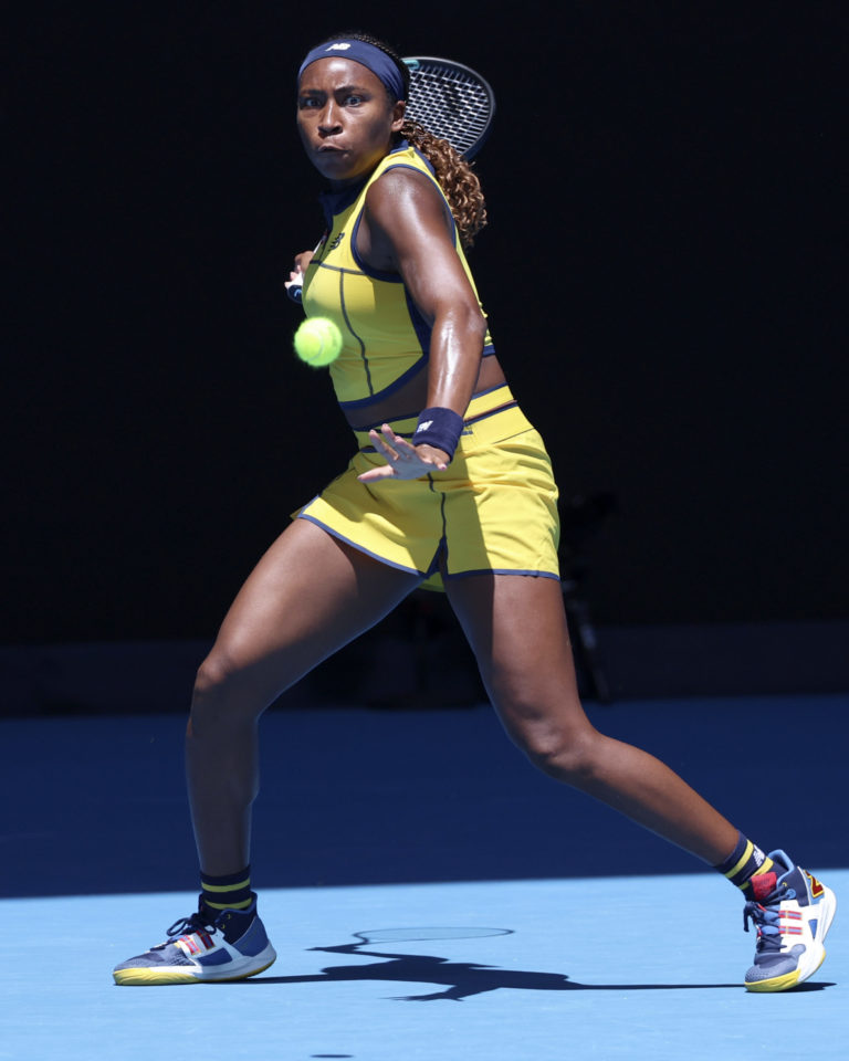 Americká tenistka Cori Gauffová počas zápasu 1. kola Australian Open 2024, v ktorom hladko zdolala Slovenku Annu Karolínu Schmiedlovú 6:3, 6:0. Melbourne, 15. január 2024. Foto: SITA/AP