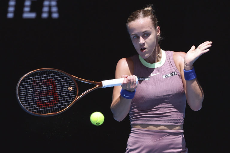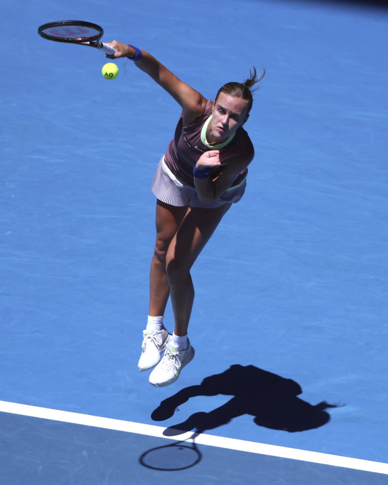 Slovenská tenistka Anna Karolína Schmiedlová počas zápasu 1. kola Australian Open 2024, v ktorom hladko podľahla "štvorke turnaja Američanke Coco Gauffovej 3:6, 0:6. Melbourne, 15.. január 2024. Foto: SITA/AP.