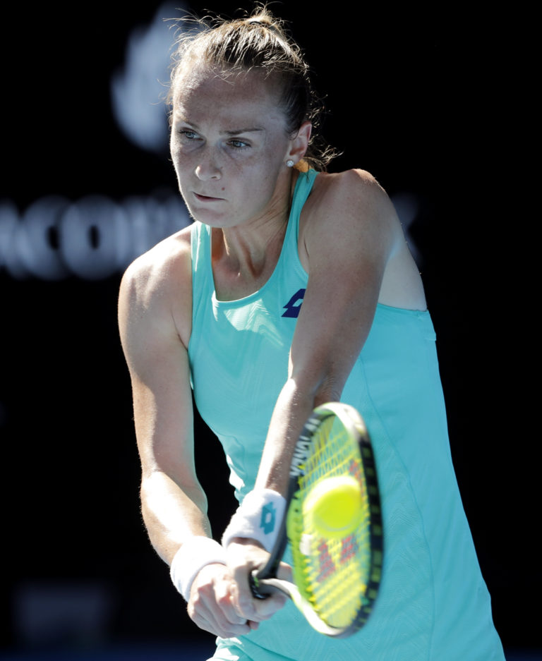 Slovenská tenistka Magdaléna Rybáriková počas zápasu 3. kola Australian Open, v ktorom zdolala Ukrajinku Katerynu Bondarenkovú 7:5, 3:6, 6:1. Melbourne, 19. január 2018. Foto: SITA/AP.