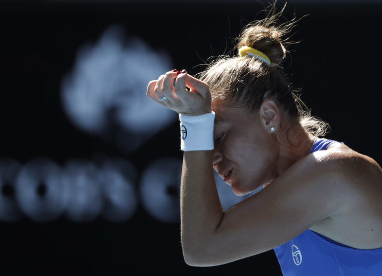 Ukrajinská tenistka Kateryna Bondarenková počas zápasu 3. kola Australian Open, v ktorom prehrala so Slovenkou Magdalénou Rybárikovou 5:7, 6:3, 1:6. Melbourne, 19. január 2018. Foto: SITA/AP