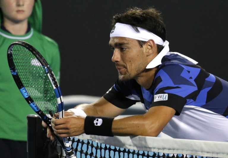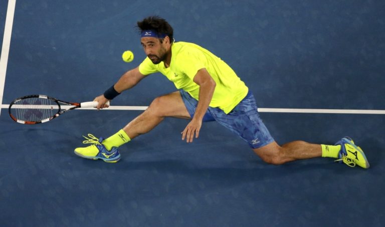 Taliansky tenista Fabio Fognini počas zápasu 2. kola Australian Open, v ktorom nestačil na Francúza Benoita Paireho 6:7 (3), 6:4, 3:6, 6:3, 3:6. Melbourne, 19. január 2017. Foto: SITA/AP