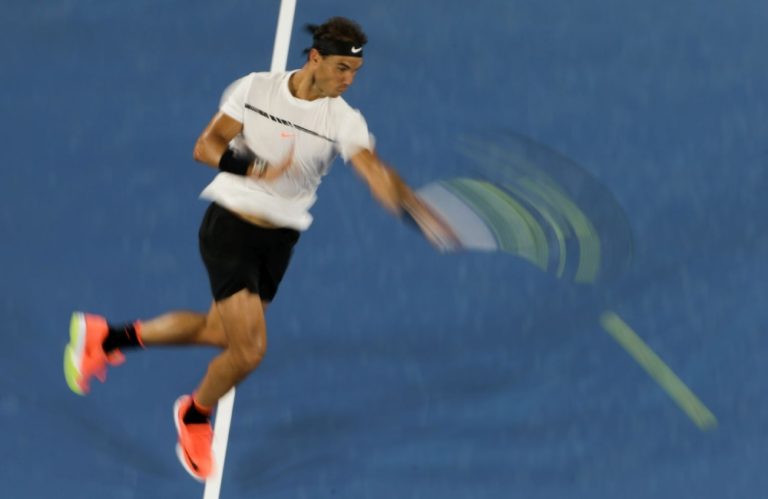 Španielsky tenista Rafael Nadal počas zápasu 2. kola Australian Open, v ktorom zdolal Cyperčana Marca Baghdatisa 6:3, 6:1, 6:3. Melbourne, 19. január 2017. Foto: SITA/AP