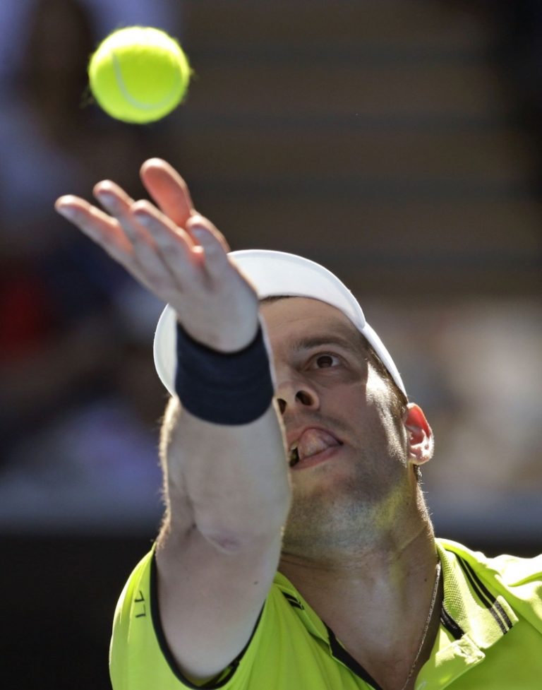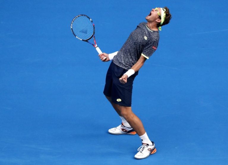 Belgický tenista David Goffin počas zápasu 2. kola Australian Open, v ktorom zdolal Čecha Radka Štěpánka 6:4, 6:0, 6:3. Melbourne, 19. január 2017. Foto: SITA/AP