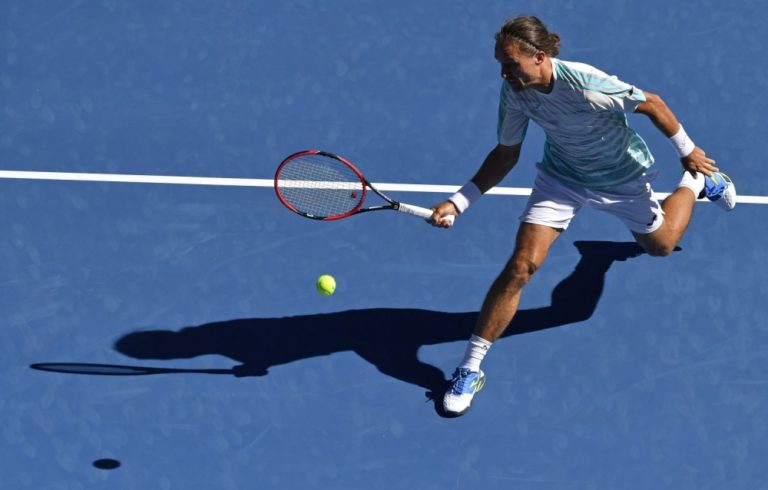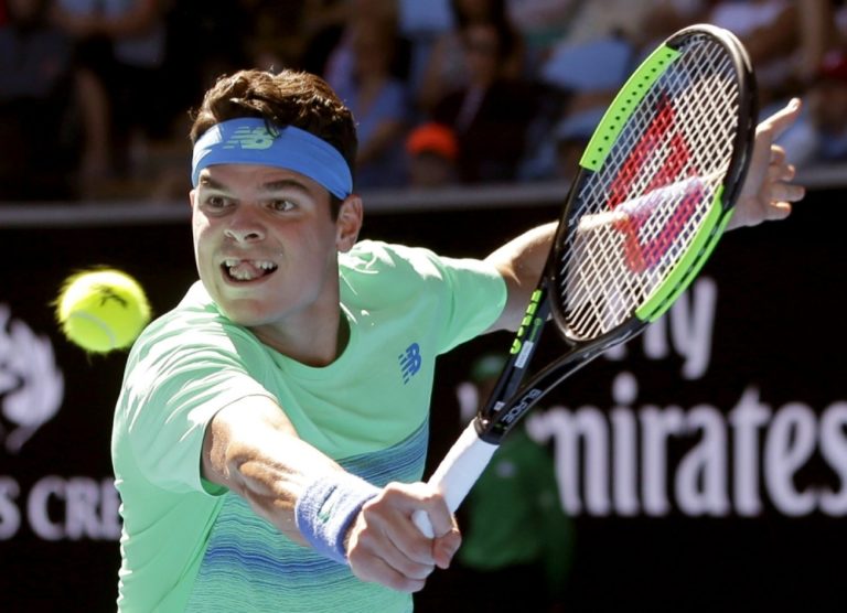 Kanadský tenista Milos Raonis počas zápasu 2. kola Australian Open, v ktorom porazil Luxemburčana Gillesa Mullera 6:3, 6:4, 7:6 (4). Melbourne, 19. január 2017. Foto: SITA/AP
