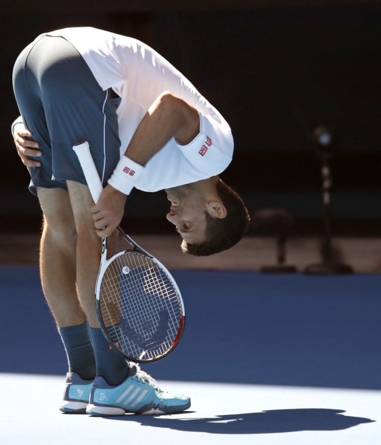 Srbský tenista Novak Djokovič počas zápasu 2. kola Australian Open, v ktorom prekvapujúco prehral s Denisom Istominom z Uzbekistanu 6:7 (8), 7:5, 6:2, 6:7 (5), 4:6. Melbourne, 19. január 2017. Foto: SITA/AP