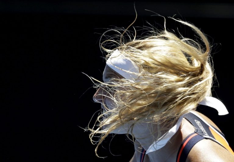 Grécka tenistka Maria Sakkariová počas zápasu 2. kola Australian Open, v ktorom porazila Francúzku Alizé Cornetovú 7:5, 4:6, 6:1. Melbourne, 19. január 2017. Foto: SITA/AP