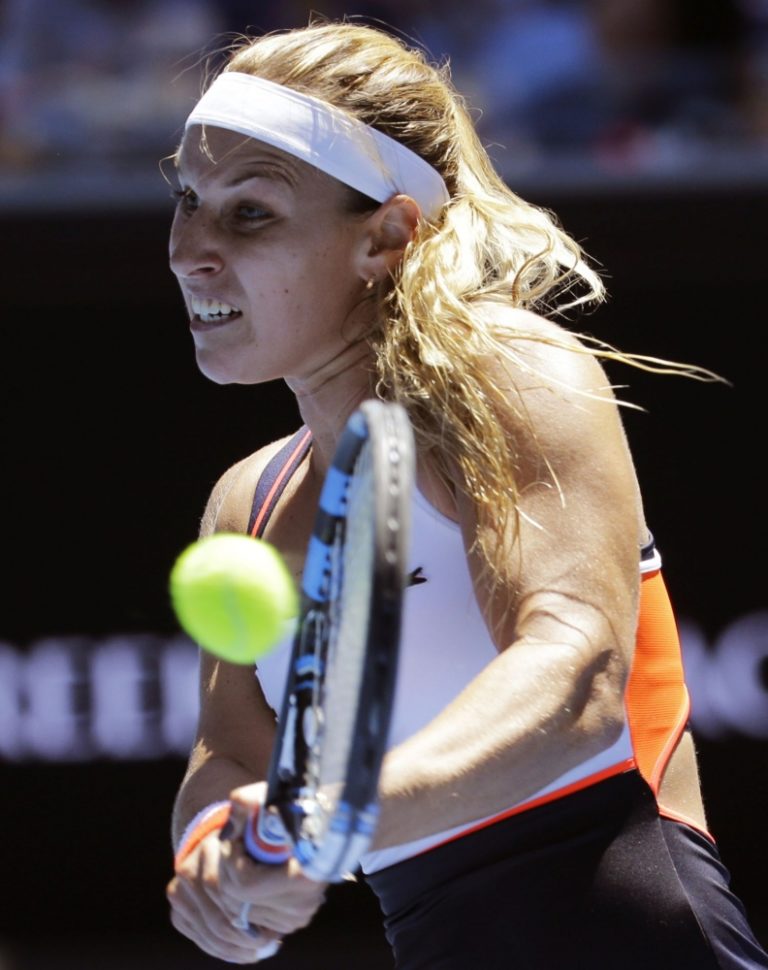 Chorvátska tenistka Mirjana Lučičová-Baroniová počas zápasu 2. kola, v ktorom prekvapujúco zdolala Poľku Agnieszku Radwanskú 6:3, 6:2. Melbourne, 19. január 2017. Foto: SITA/AP