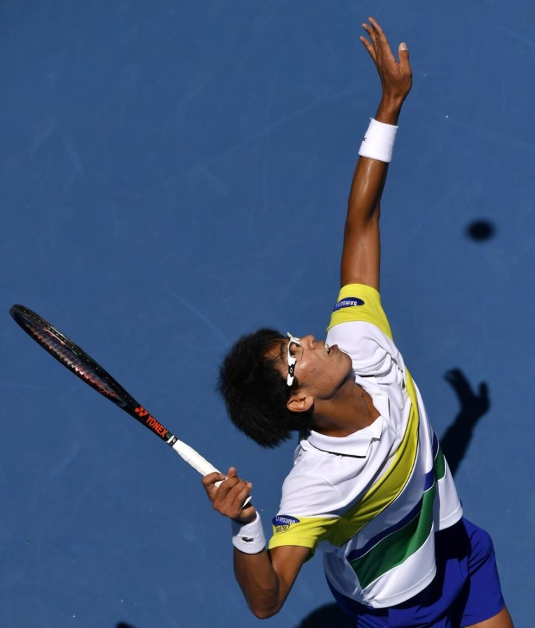 Čchung Hje-on z Kórejskej republiky počas zápasu 2. kola Australian Open, v ktorom podľahol bulharskému tenistovi Grigorovi Dimitrovovi 6:1, 4:6, 4:6, 4:6. Melbourne, 19. január 2017. Foto: SITA/AP