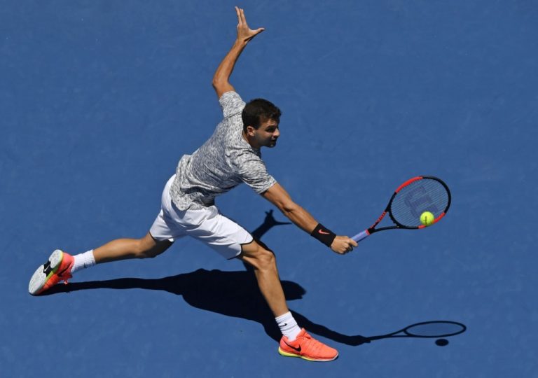 Bulharský tenista Grigor Dimitrov počas zápasu 2. kola Australian Open, v ktorom zdolal Čchung Hje-ona z Kórejskej republiky 1:6, 6:4, 6:4, 6:4. Melbourne, 19. január 2017. Foto: SITA/AP