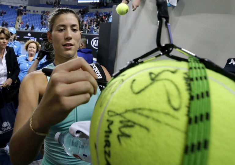 Španielska tenistka Garbine Muguruzová-Blancová rozdáva autogramy po zápase 3. kola Australian Open, v ktorom zdolala Lotyšku Anastasiju Sevastovovú 6:4, 6:2. Melbourne, 20. január 2017.