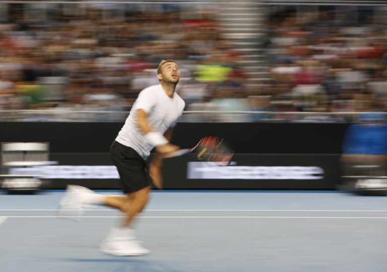Britský tenista Daniel Evans počas zápasu 3. kola Austrlalian Open, v ktorom porazil Austrálčana Bernarda Tomica 7:5, 7:6 (2), 7:6 (3). Melbourne, 20. január 2017. Foto: SITA/AP
