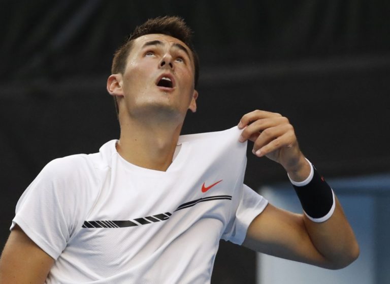 Austrálsky tenista Bernard Tomic počas zápasu 3. kola Australian Open, v ktorom podľahol Britovi Danielovi Evansovi 5:7, 6:7, 6:7. Melbourne, 20. január 2017. Foto: SITA/AP