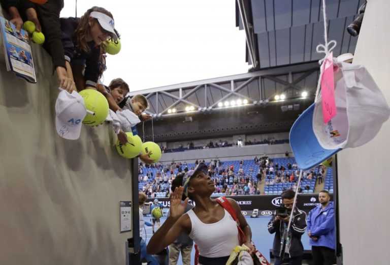 Americká tenistka Venus Williamsová po zápase 3. kola Australian Open, v ktorom deklasovala Číňanku Tuan Jing-jing 6:1, 6:0. Melbourne, 20. január 2017. Foto: SITA/AP