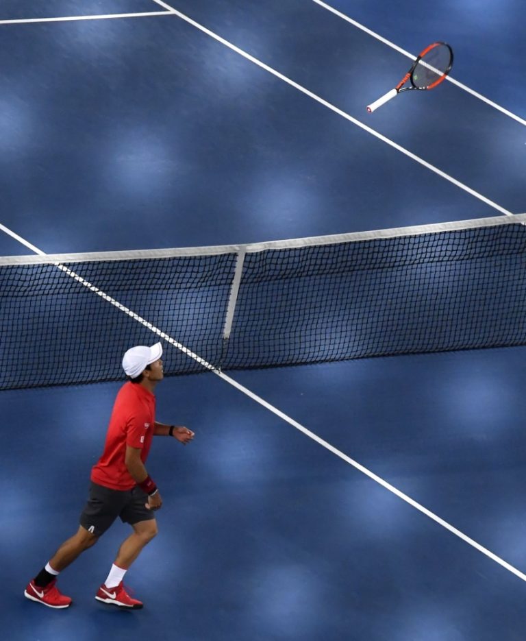 Japonský tenista Kei Nišikori počas zápasu 3. kola Austrlalian Open, v ktorom zdolala Slováka Lukáša Lacka trikrát 6:4. Melbourne, 20. január 2017. Foto: SITA/AP