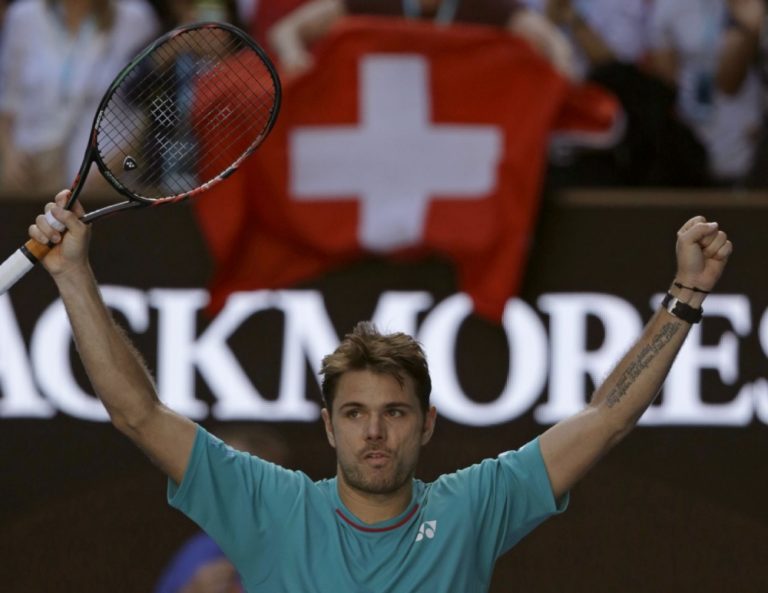 Švajčiarsky tenista Stan Wawrinka počas zápasu 3. kola Australian Open, v ktorom zdolal Viktora Troického 3:6, 6:2, 6:2, 7:6 (7). Melbourne, 20. január 2017. Foto: SITA/AP