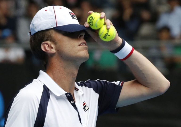 Americký tenista Sam Querrey počas zápasu 3. kola Australian Open, v ktorom podľahol Andymu Murraymu 4:6, 2:6, 4:6. Melbourne, 20. január 2017. Foto: SITA/AP