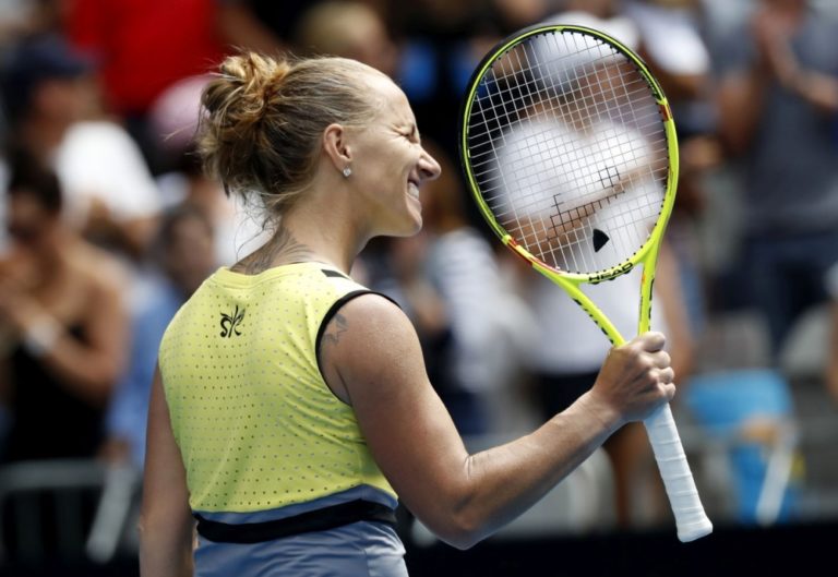 Česká tenistka Kristýna Plíšková počas zápasu 3. kola Australian Open, v ktorom prehrala s Nemkou Angelique Kerberovou 0:6, 4:6. Melbourne, 20. január 2017. Foto: SITA/AP