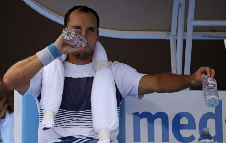 Belgický tenista Steve Darcis počas zápasu 3. kola Australian Open, v ktorom prehral s Talianom Andreasom Seppim 6:4, 4:6, 6:7, 6:7. Melbourne, 20. január 2017. Foto: SITA/AP