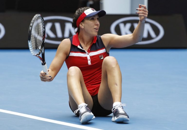 Americká tenistka CoCo Vandeweghová počas zápasu 3. kola Australian Open, v ktorom porazila Kanaďanku Eugenie Bouchardovú 6:4, 3:6, 7:5. Melbourne, 20. január 2017. Foto: SITA/AP