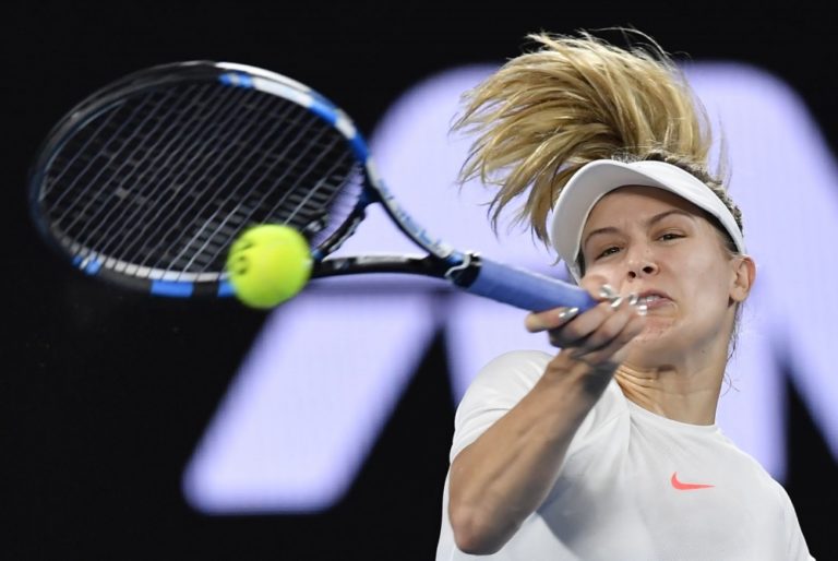 Kanadská tenistka Eugenie Bouchardová počas zápasu 3. kola Australian Open, v ktorom prehrala s Američankou Coco Vandeweghovou 4:6, 6:3, 5:7. Melbourne, 20. január 2017. Foto: SITA/AP