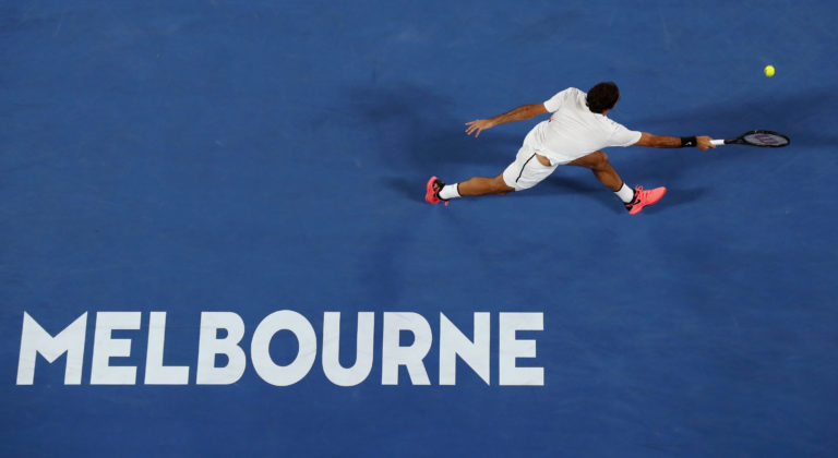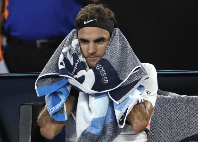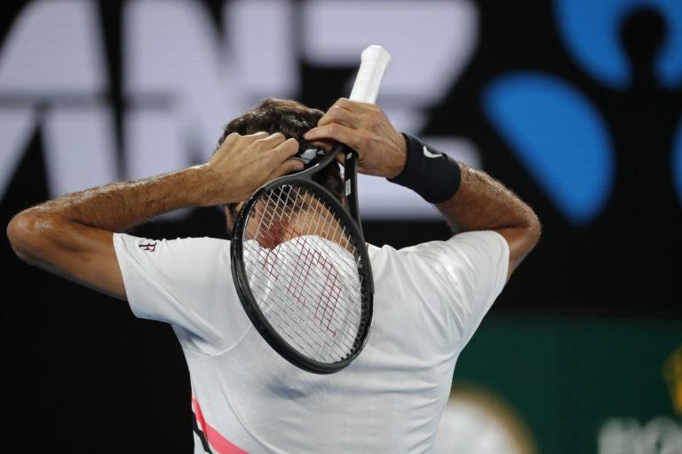 Švajčiarsky tenista Roger Federer počas finálového zápasu Australian Open proti Chorvátovi Marinovi Čiličovi. Melbourne, 28. január 2018. Foto: SITA/AP.
