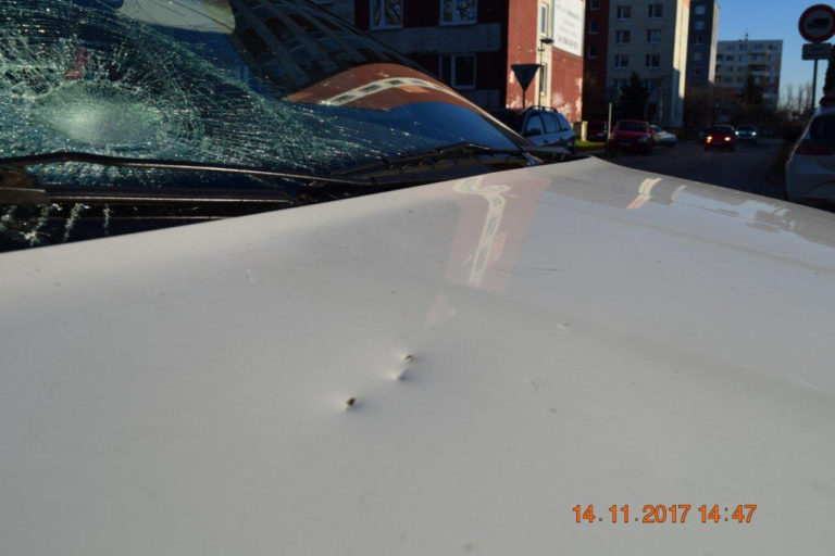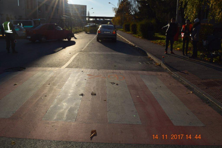 S ťažkými zraneniami skončilo 14-ročné dievča, ktoré na priechode pre chodcov v Leviciach zrazilo auto. Dvadsaťdeväťročná vodička Octavie ju pravdepodobne prehliadla, tínedžerka preletela cez kapotu a narazila do čelného skla. Zo zranení sa bude liečiť asi šesť týždňov. Levice, 16. november 2017. Foto: SITA/KR PZ Nitra.