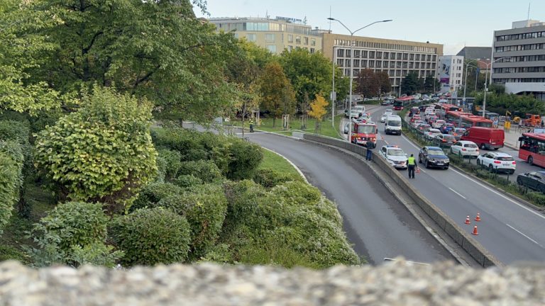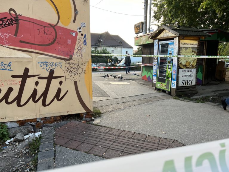Miesto tragickej dopravnej nehody, ktorá sa stala 2. októbra 2022 po 22:15 na Zochovej ulici v Bratislave. Do zastávky mestskej hromadnej dopravy (MHD) narazilo osobné auto. Bratislava, 3. október 2022. Foto: SITA/Branislav Bibel.