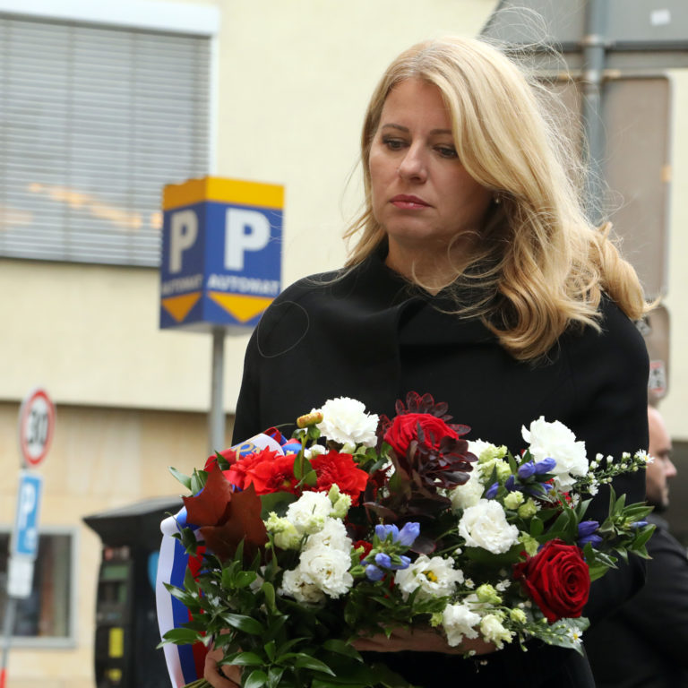 Prezidentka SR Zuzana Čaputová si uctila pamiatku obetí tragickej dopravnej nehody položením kvetov a zapálením sviečky neïaleko zastávky Zochova v Bratislave. Do zastávky mestskej hromadnej dopravy (MHD) plnej ľudí nabúral 2. októbra 2022 po 22:15 vodič osobného auta. Bratislava, 3. október 2022. Foto: SITA/Kancelária prezidentky SR.