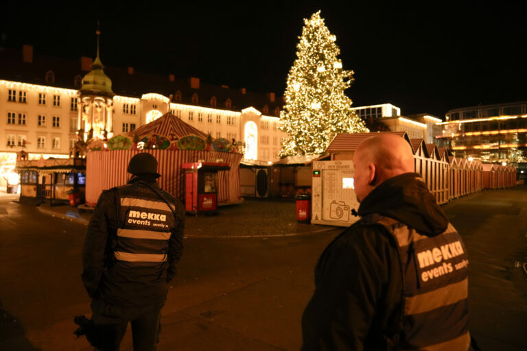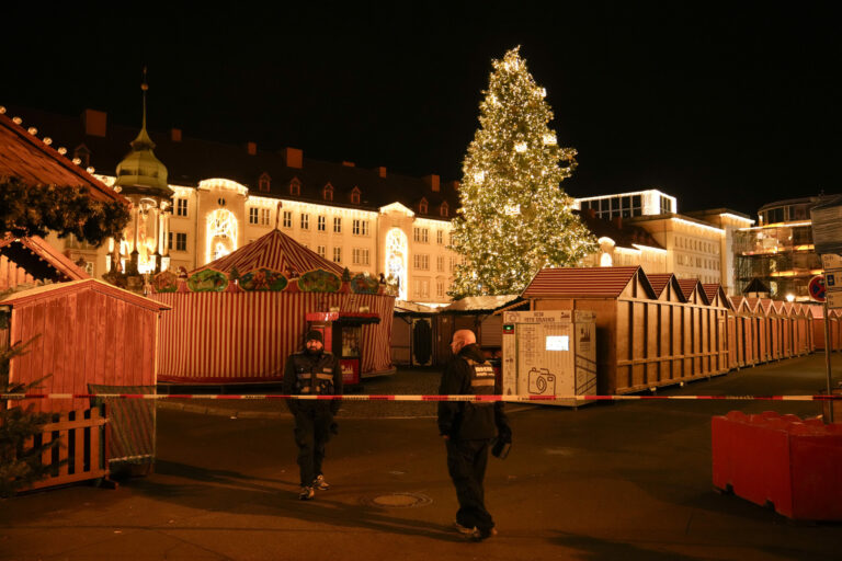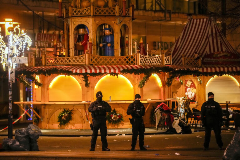 Pohľad na stánky na vianočných trhoch v nemeckom Magdeburgu po tom, čo lekár s autom zrazil ľudí. Magdeburg, 20. decembra 2024 Foto: Heiko Rebsch/dpa via AP