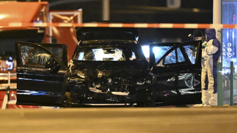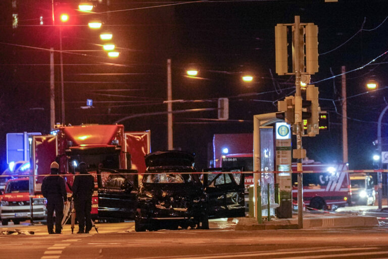 Forenzní vyšetrovatelia dôkladne prezerajú auto, ktorým 50-ročný lekár zrazil ľudí na vianočných trhoch v Magdeburgu. Magdeburg, 21. decembra 2024. Foto: Hendrik Schmidt/dpa via AP