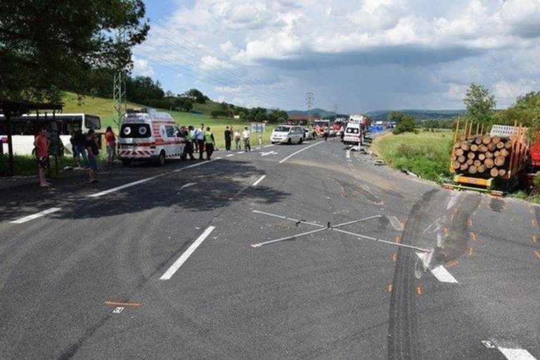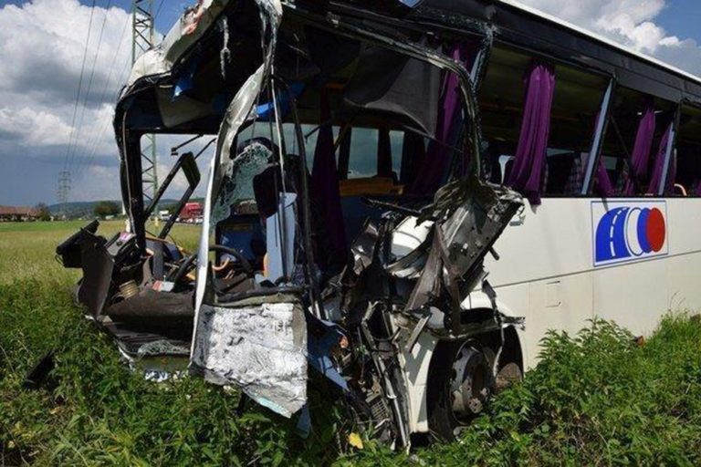 Pondelkovú tragickú zrážku autobusu s nákladným autom pri Krupine vyšetruje polícia ako všeobecné ohrozenie. Nehoda si vyžiadala jednu obeť, v autobuse sa zranilo sedem cestujúcich a zranení sú aj obaja šoféri. Predbežné škody po nehode sa vyšplhali na 68 tisíc eur. Podľa doterajších informácií 31-ročný vodič autobusu prešiel do protismeru a zrazil sa s protiidúcim nákladným Volvom s návesom, ktoré šoféroval 23-ročný Banskobystričan. Zrážku neprežila 88-ročná dôchodkyňa z Krupiny. Foto: SITA/KR PZ Banská Bystrica