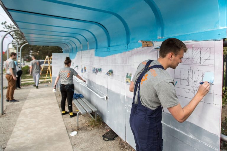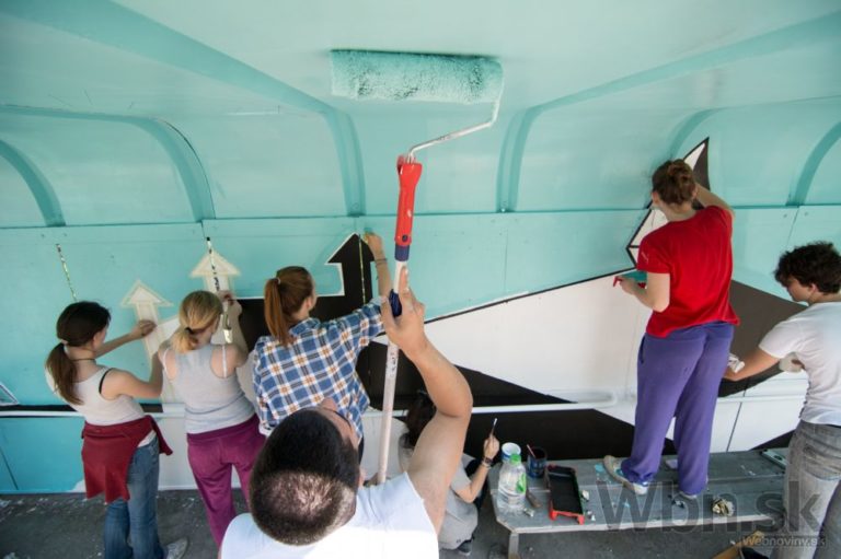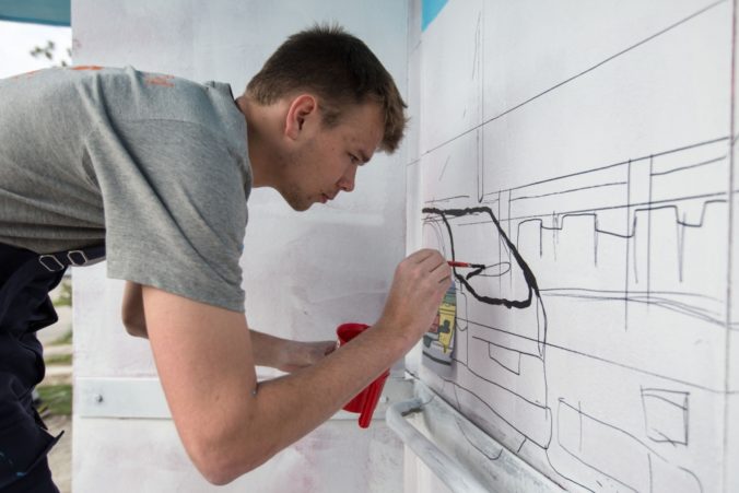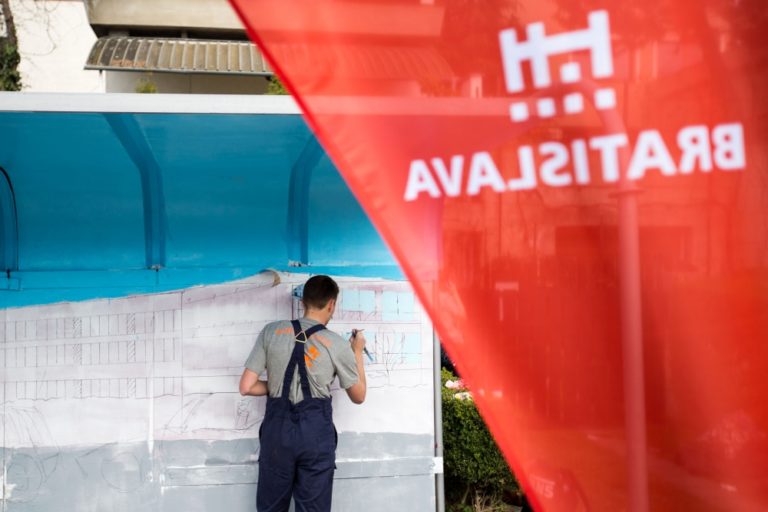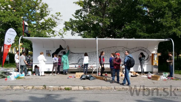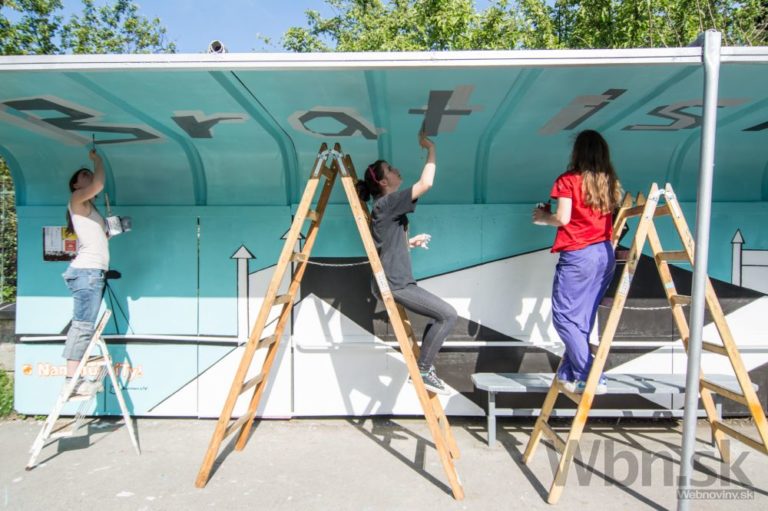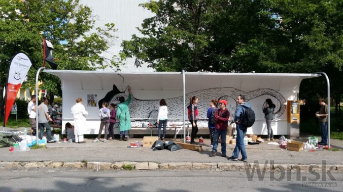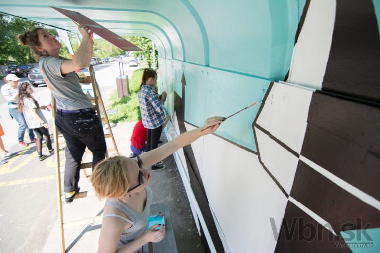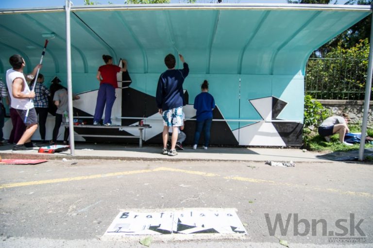 Projektu Namaľuj CiTY! Bratislave priniesol krajšie zastávky MHD. Do maľovania sa zapojili členovia Mestského parlamentu mladých, ale aj mladí Bratislavčania. Foto: SITA/Michal Lukáč