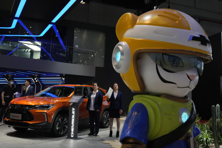 Výstava čínskej automobilky GAC Trumpchi počas autosalónu Auto Shanghai 2023 v Šanghaji. Foto: SITA/AP, Ng Han Guan