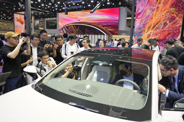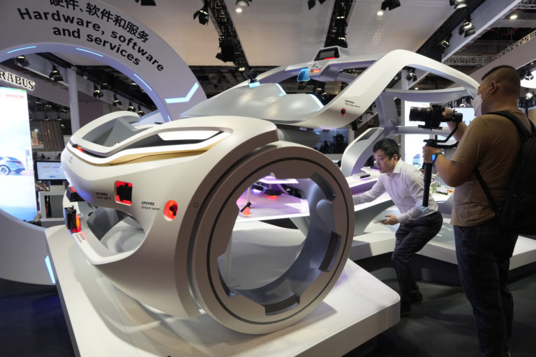 Na autosalóne Auto Shanghai 2023 bolo vystavené aj inteligentné vozidlo. Foto: SITA/AP, Ng Han Guan
