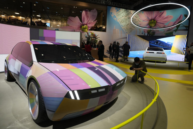 Koncepčný automobil Dee od BMW, ktorý môže meniť svoju farbu podľa želania. Foto: SITA/AP, Ng Han Guan