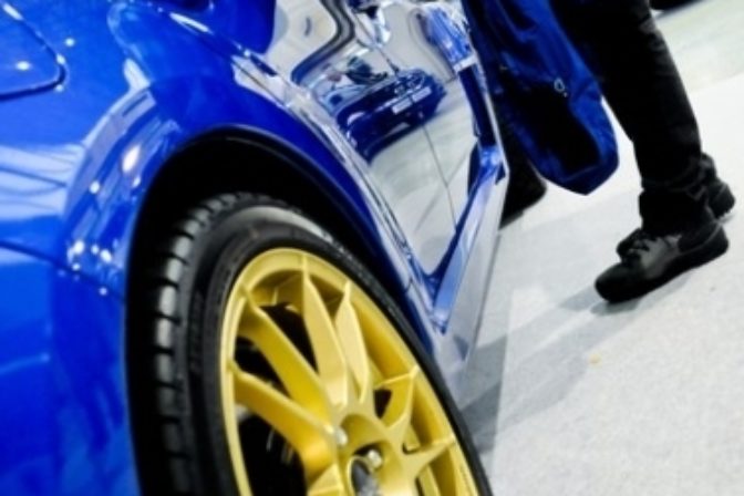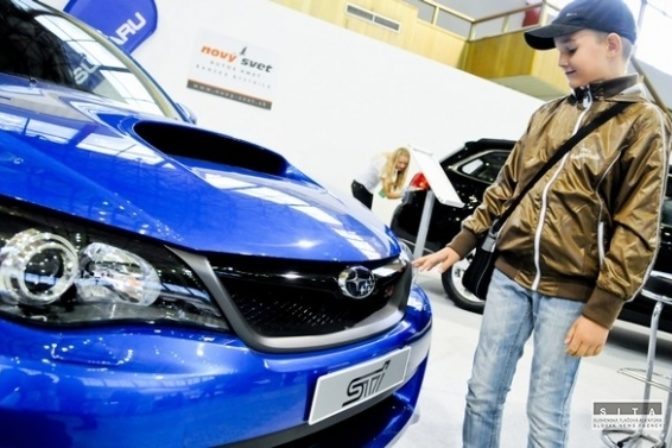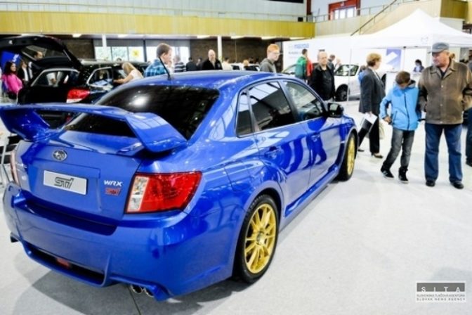 Návštevník si prezerá automobil Subaru WRX STI počas Autosalónu Autoshow Nitra 2017 - 24. ročníka prehliadky osobných, úžitkových a nákladných automobilov, dopravnej techniky, autopríslušenstva a servisnej i garážovej techniky. Nitra, 5. október 2017. Foto: SITA/Martin Medňanský