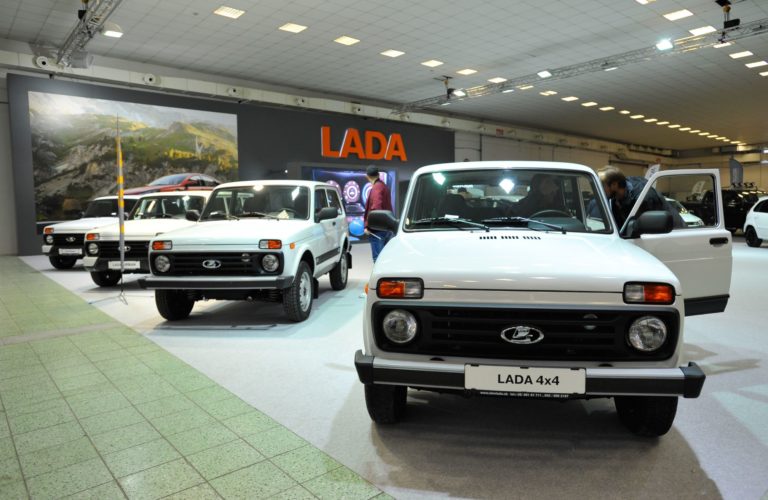 Pohľad na automobily Lada počas Autosalónu Autoshow Nitra 2017 - 24. ročníka prehliadky osobných, úžitkových a nákladných automobilov, dopravnej techniky, autopríslušenstva a servisnej i garážovej techniky. Nitra, 5. október 2017. Foto: SITA/Martin Medňanský