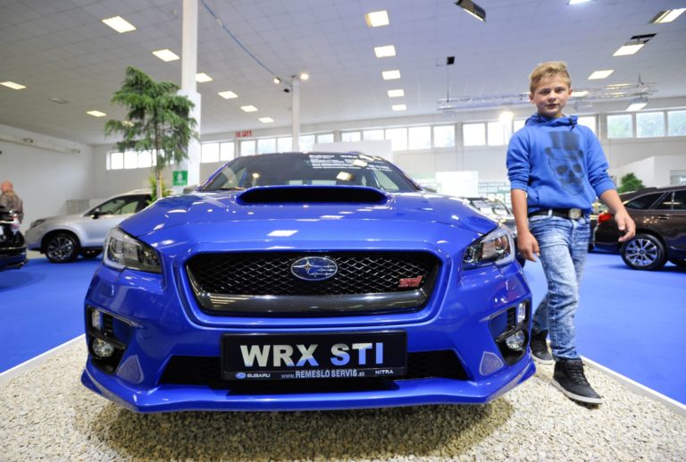Návštevník si prezerá automobil Subaru WRX STI počas Autosalónu Autoshow Nitra 2017 - 24. ročníka prehliadky osobných, úžitkových a nákladných automobilov, dopravnej techniky, autopríslušenstva a servisnej i garážovej techniky. Nitra, 5. október 2017. Foto: SITA/Martin Medňanský