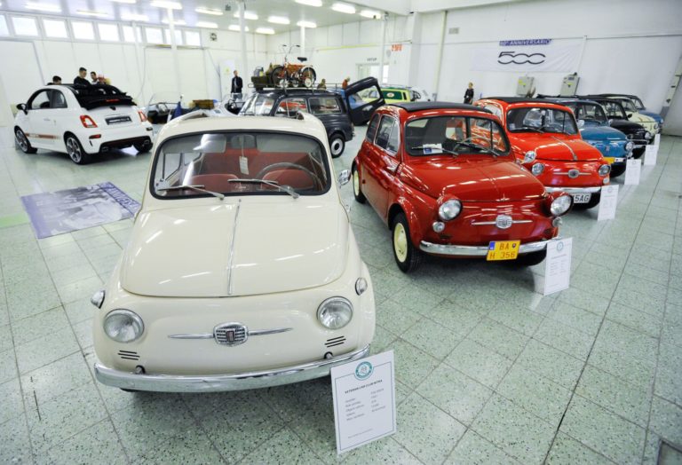 Pohľad na historické automobily Fiat 500 počas Autosalónu Autoshow Nitra 2017 - 24. ročníka prehliadky osobných, úžitkových a nákladných automobilov, dopravnej techniky, autopríslušenstva a servisnej i garážovej techniky. Nitra, 5. október 2017. Foto: SITA/Martin Medňanský