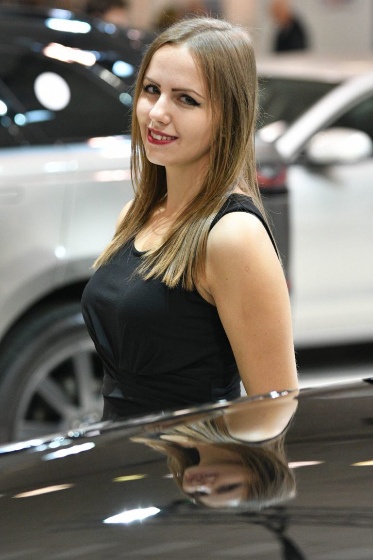 Hosteska Autosalónu Autoshow Nitra 2017 - 24. ročníka prehliadky osobných, úžitkových a nákladných automobilov, dopravnej techniky, autopríslušenstva a servisnej i garážovej techniky. Nitra, 5. október 2017. Foto: SITA/Martin Medňanský