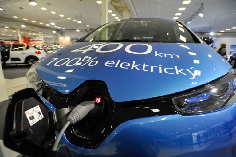Pohľad na nabíjanie automobilu Renault Zoe počas Autosalónu Autoshow Nitra 2017 - 24. ročníka prehliadky osobných, úžitkových a nákladných automobilov, dopravnej techniky, autopríslušenstva a servisnej i garážovej techniky. Nitra, 5. október 2017. Foto: SITA/Martin Medňanský