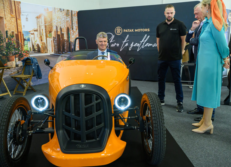 Návštevníci si prezerajú mestské vozidlo Patak Rodster od slovenského výrobcu Patak Motors počas otvorenia výstavy Autosalón Autoshow Nitra 2022 na výstavisku Agrokomplex v Nitre. Nitra, 13. október 2022. Foto: SITA/Martin Havran