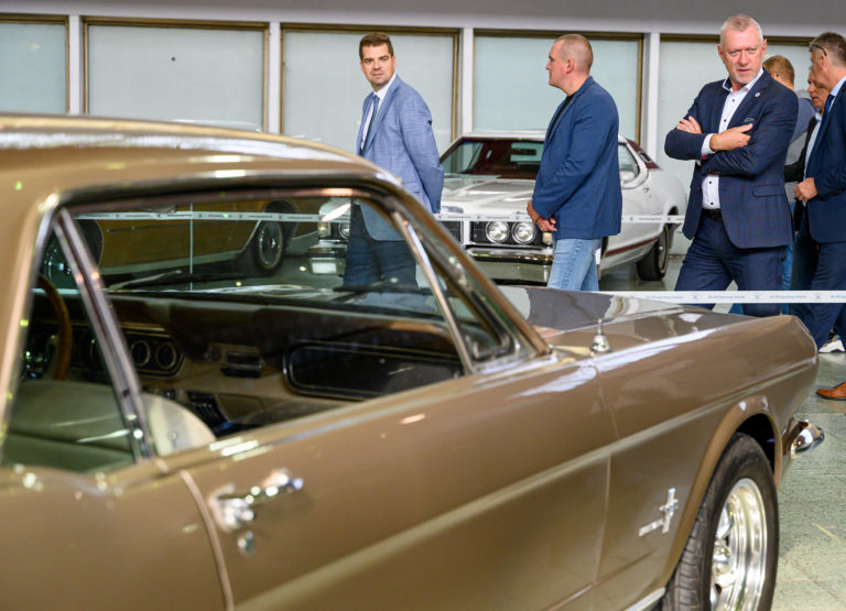 Nový riaditeľ Národného výstaviska Agrokomplex Jozef Pavle (druhý sprava) počas prehliadky vozidla pri príležitosti otvorenia výstavy Autosalón Autoshow Nitra 2022 na výstavisku Agrokomplex v Nitre. Nitra, 13. október 2022. Foto: SITA/Martin Havran