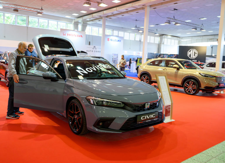 Návštevníci si prezerajú vozidlo Honda Civic počas otvorenia výstavy Autosalón Autoshow Nitra 2022 výstavisku Agrokomplex v Nitre. Nitra, 13. október 2022. Foto: SITA/Martin Havran