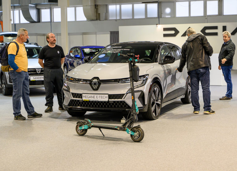 Návštevníci si prezerajú elektrické vozidlo Renault Megane E-TECH počas otvorenia výstavy Autosalón Autoshow Nitra 2022 výstavisku Agrokomplex v Nitre. Nitra, 13. október 2022. Foto: SITA/Martin Havran