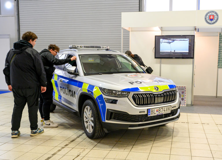 Návštevníci si prezerajú vozidlo Policajného zboru SR koda Kodiaq počas otvorenia výstavy Autosalón Autoshow Nitra 2022 výstavisku Agrokomplex v Nitre. Nitra, 13. október 2022. Foto: SITA/Martin Havran